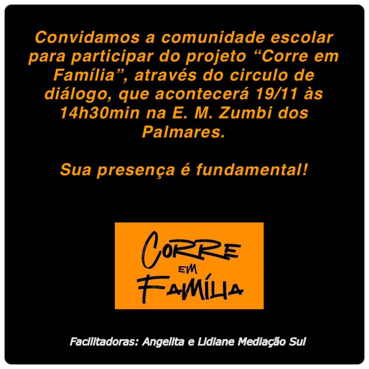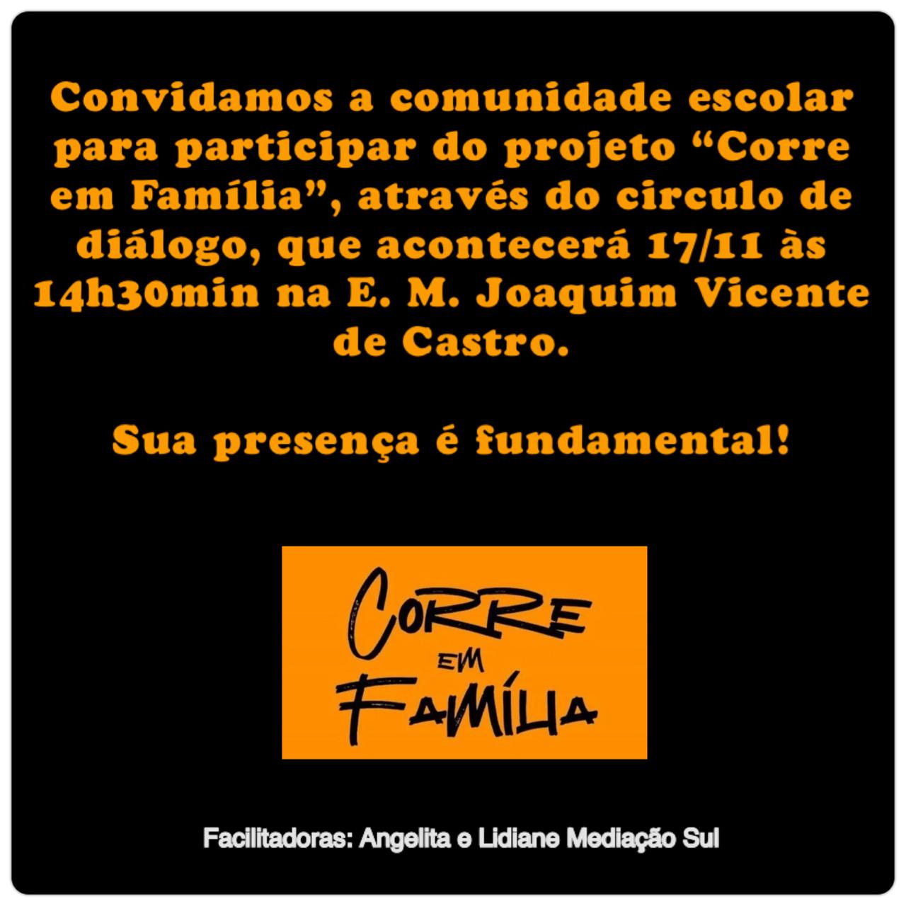 A ideia do Projeto é trabalhar com as famílias atendidas no Conselho Tutelar com Círculos de Diálogos que pudesse fortalece-las diante de tantas fragilidades e proporcionar momentos de escuta ativa com responsáveis e adolescente buscando ressignificar suas vidas. Para execução da Ação CORRE em família são necessários diferentes atores do Sistema de Garantia de Direitos Vara da Infância e Juventude de Londrina: