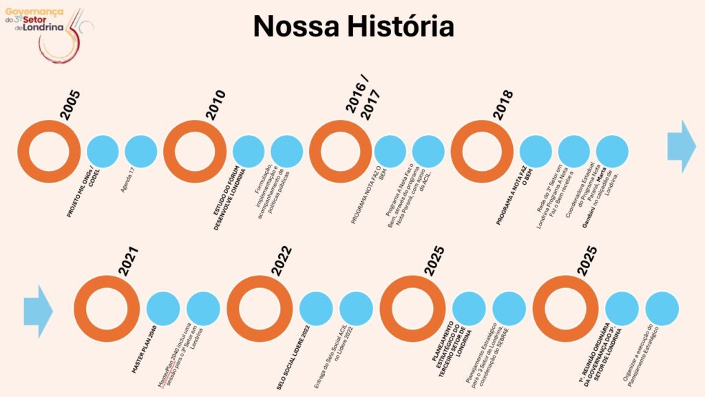 Em 2020 foi a próxima fase com a mudança de Rede do Terceiro Setor para a ACIL que passou a se organizar como Núcleo Rede do 3° Setor do Programa Empreender da ACIL (2020 – 2024) e em fevereiro de 2025 chegamos à Governança do 3° Setor de Londrina, sendo que o Nucleo ainda permanece como membro da Governança.