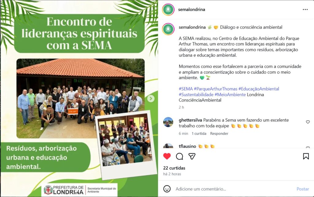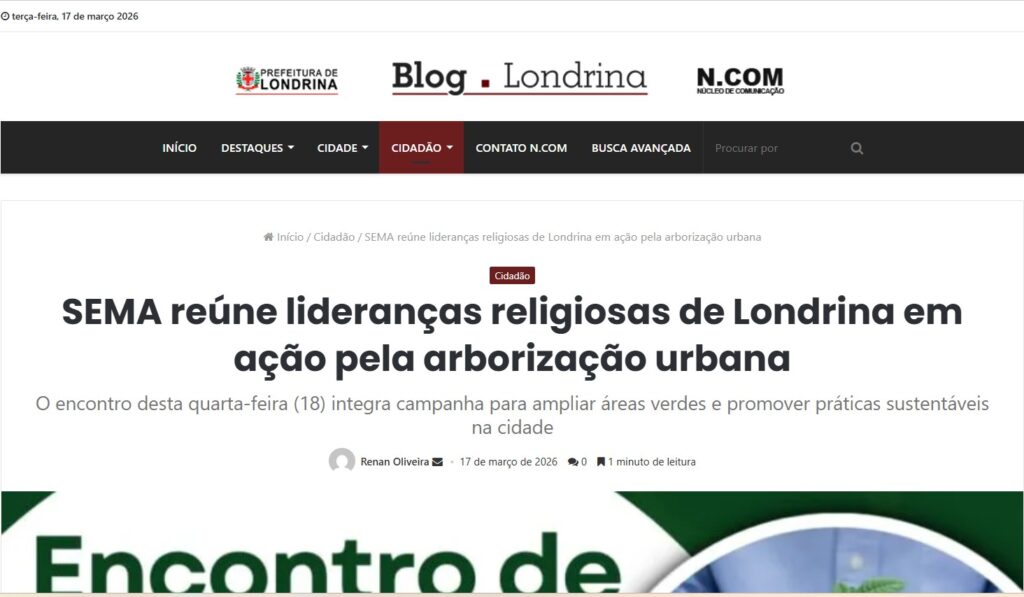 (SEMA reúne lideranças religiosas de Londrina em ação pela arborização urbana. O encontro desta quarta-feira (18) integra campanha para ampliar áreas verdes e promover práticas sustentáveis na cidade.