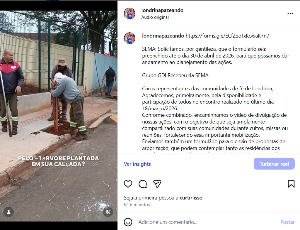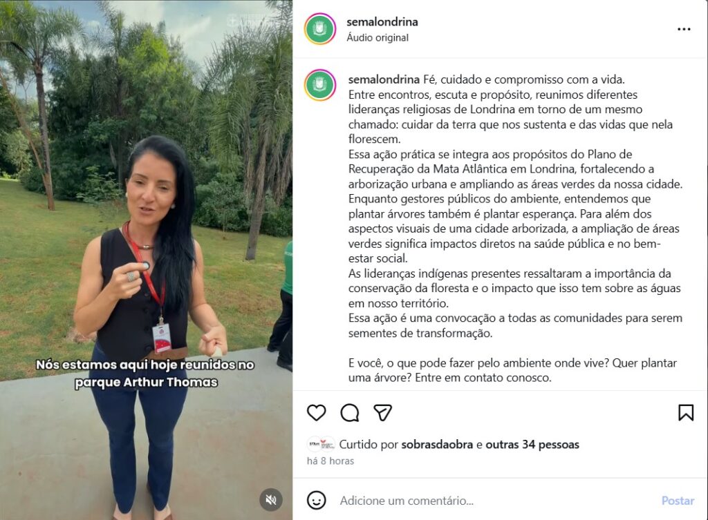 Estamos mobilizando em Londrina uma grande campanha de educação ambiental, com foco na arborização urbana e na ampliação das áreas verdes, reconhecendo que esses elementos são fundamentais para promover a saúde integral de toda a população.