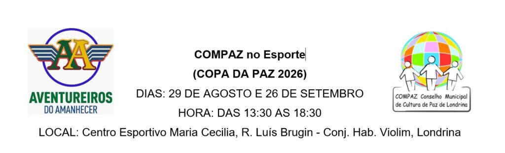 Participarão da COPA DA PAZ 2026 um total de 8 equipes convidadas pelo Clube Aventureiros do Amanhecer, em parceria com o Conselho Municipal de Cultura de Paz. Cada equipe deve ter entre 5 e 10 meninas e/ou meninos nascidos entre 2014 e 2016.
