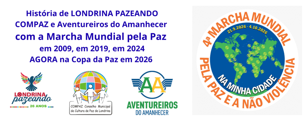 Porém muitas das “ações que pazeiam” são, não só antigas, mas praticadas com frequência e em muitos momentos, e é uma nova que estamos propondo agora, como CLUBE AVENTUREIROS DO AMANHECER, instituição cultural com 24 anos de existência, ao Grupo de Diálogo Inter-Religioso, dentro do mais profundo sentimento que aqui nos une: incentivar a Cultura de Paz, educar para a Cultura de Paz, no maior número de possibilidades que tenhamos, e isso é Pazear em Ação.