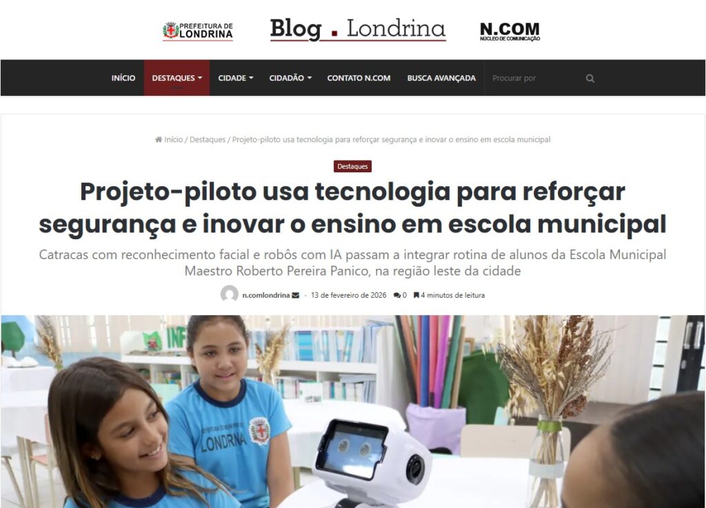 - Projeto-Piloto (Escola Maestro Roberto Panico): Londrina já iniciou o uso de IA em projetos-piloto que incluem catracas com reconhecimento facial para maior segurança e robôs interativos que auxiliam no suporte a crianças neurodivergentes (como autistas), promovendo a inclusão escolar.