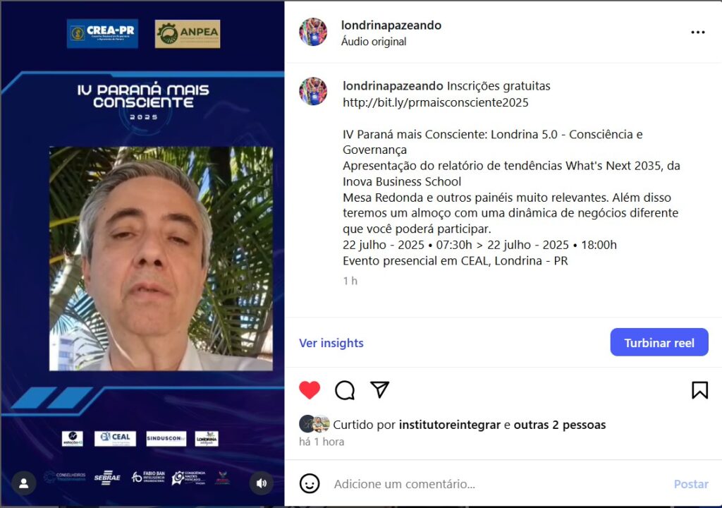 REDES: @fabioban, @anpea_pr, @creaparana @estacao.43, @londrinapazeando, @conselheirostrendsinnovation, @capitalismoconscientebrasil