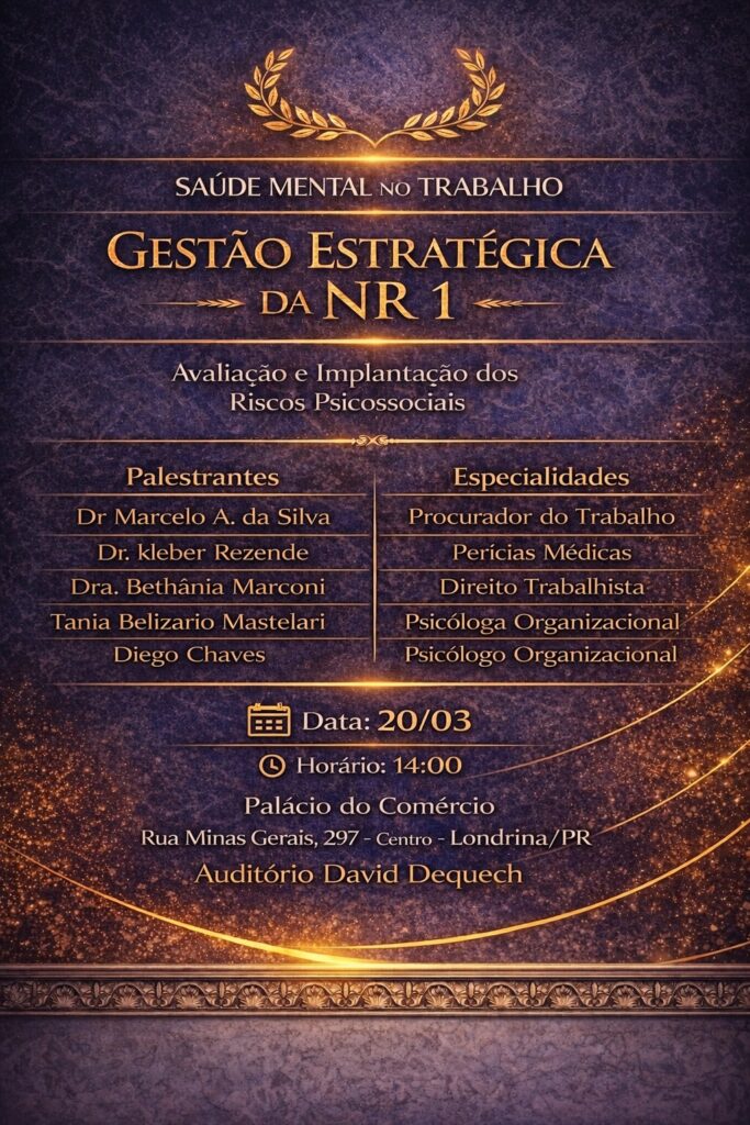 Um encontro técnico e estratégico para empresários, profissionais de SST, RH e gestores que desejam implementar a NR 1 com segurança e responsabilidade.